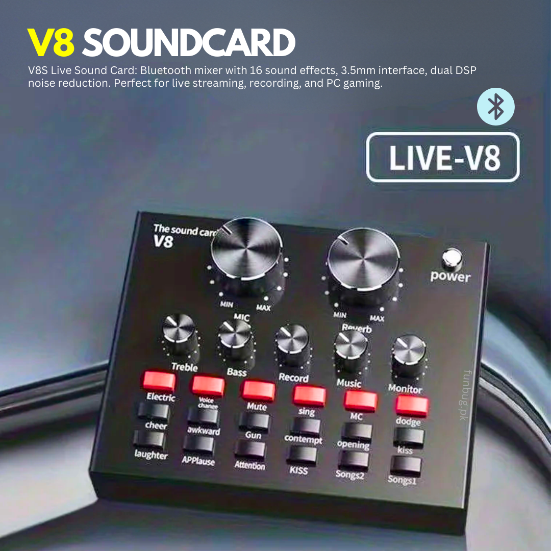- V8 Live Sound Card: Features 16 sound effects, 8 modes, and one-key background music activation for an enhanced audio experience.