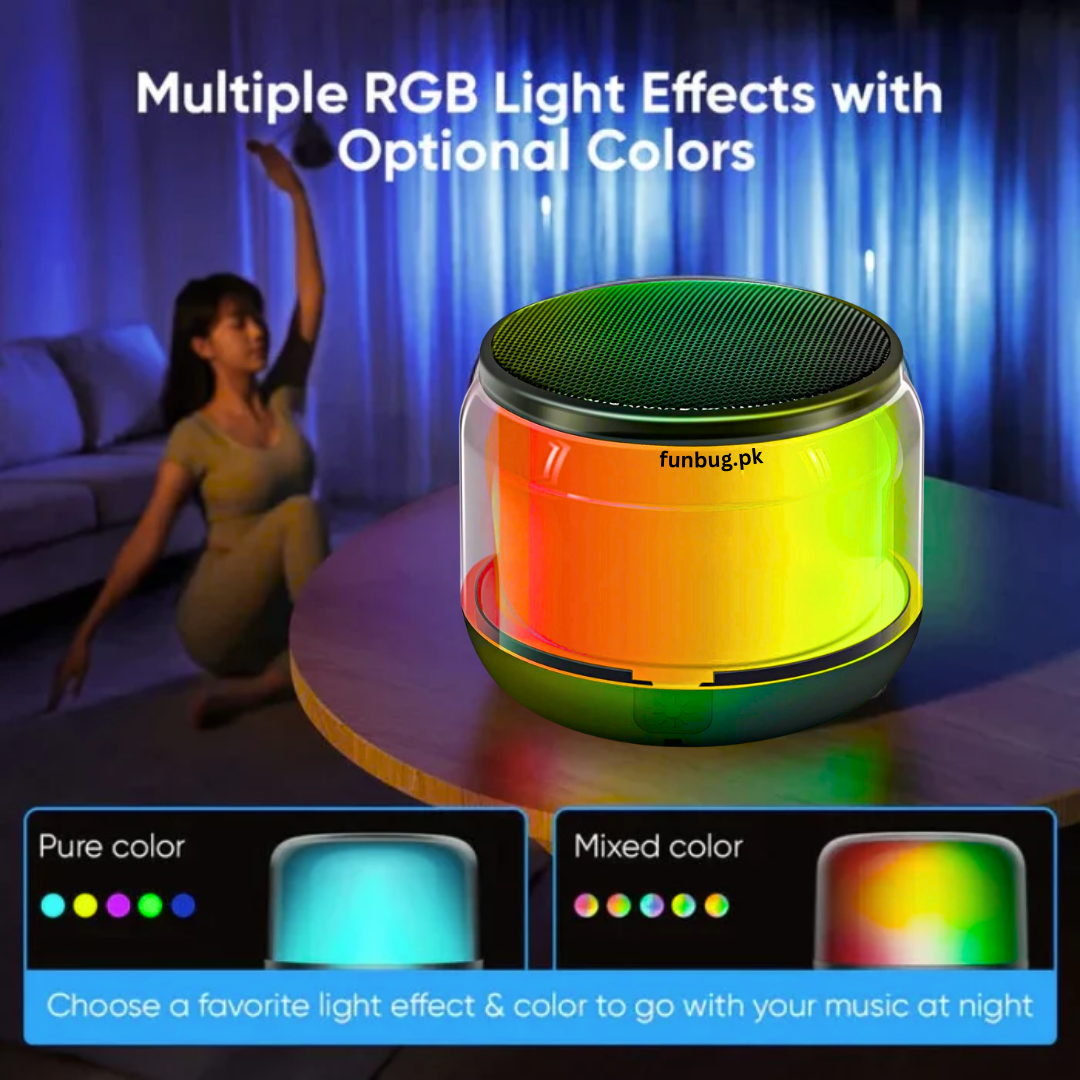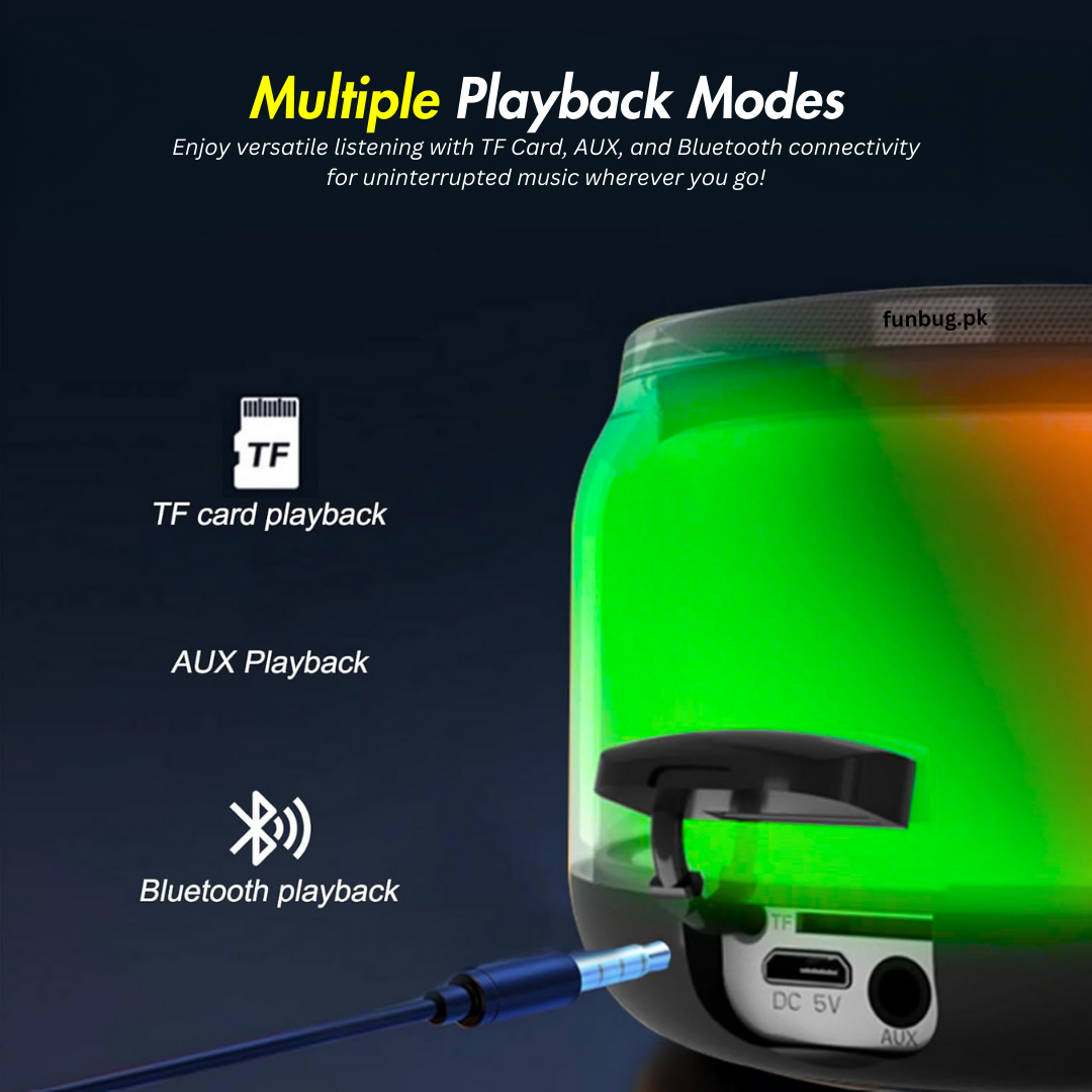 Portable Bluetooth Speaker: Enjoy powerful bass, RGB lights, and hands-free calls. It's compact, lightweight, and perfect for music on the go. Supports Bluetooth, AUX & TF card playback. 🎵🔗🌈